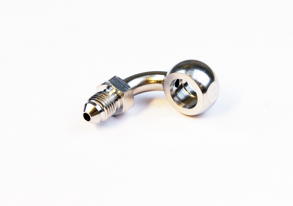 90 Grader banjo for 7/16 banjobolt i rustfritt.