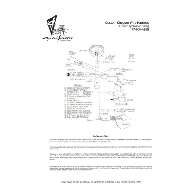 Det vil få en grunnleggende chopper opp og gå med ledninger for elektrisk start, frontlys og baklys. Ingen blinklys eller indikatorlys.