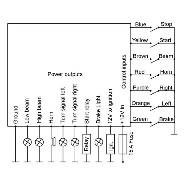 Gir deg de grunnleggende funksjoner som trengs på en custom / chopper og har rele og sikkringer internt i en tight liten boks.