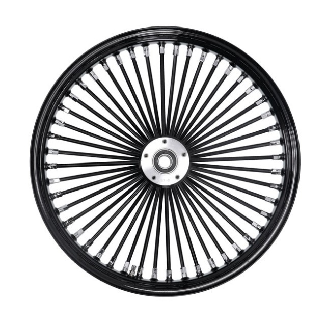 Fat Spoke felg med felgbane, nav og 8mm eiker i svart og chromede eikenippler