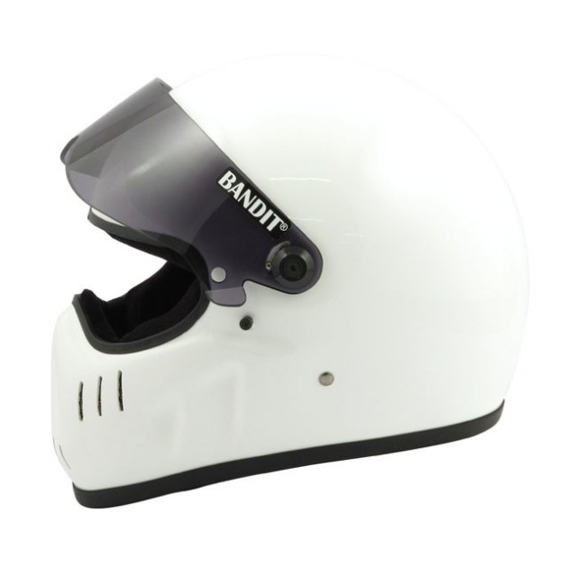 Hjelmen Bandit virkelig ble kjent for. Designet på denne hjelmen er rett og slett bad ass! Hjelmen har et glassfiberskall, stofftrekt interiør, hurtiglås og et tonet visir.