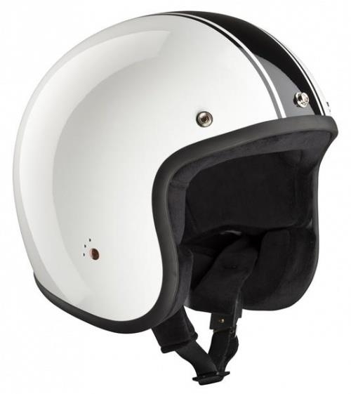 Bandit Jet halvhjelm (den som sitter fint på hodet) i blank hvit med sort stripe.