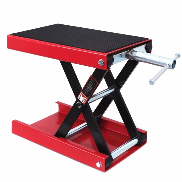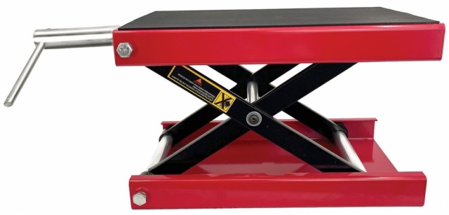 Praktisk MC jekk i høykvalitet stålkonstruksjon med gummipad for beskyttelse mot ramme.