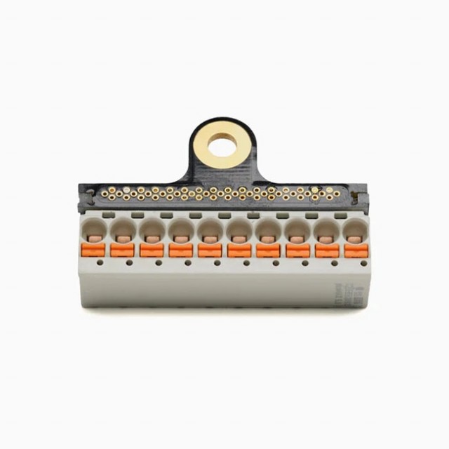 Jordkablene skyves bare inn i denne MO.Unit Jordfordeleren for en enkel, problemfri og vibrasjonssikker installasjon.