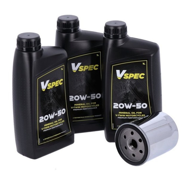 Grunnleggende servicesett med chrome oljefilter og nok motorolje til å utføre service på den spesifikke modellen som nevnt.