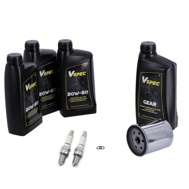 Passer Sportster modeller 1986-2022. Våre Total Servicesett inneholder oljefilter i chrome, tennplugger, o-ringer til tappeplugger og nok Vspec syntetisk motor og girolje til å utføre service på den spesifikke modellene som er nevnt.