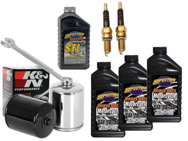 Inneholder 3x Spectro SAE 20/50 Motorolje, 1x Spectro Fullsyntetisk Primær/girolje, 1x K&N Oljefilter, 1x Drag Specialities Iridium tennplugg sett og 1x O-ring for tappeplugg.