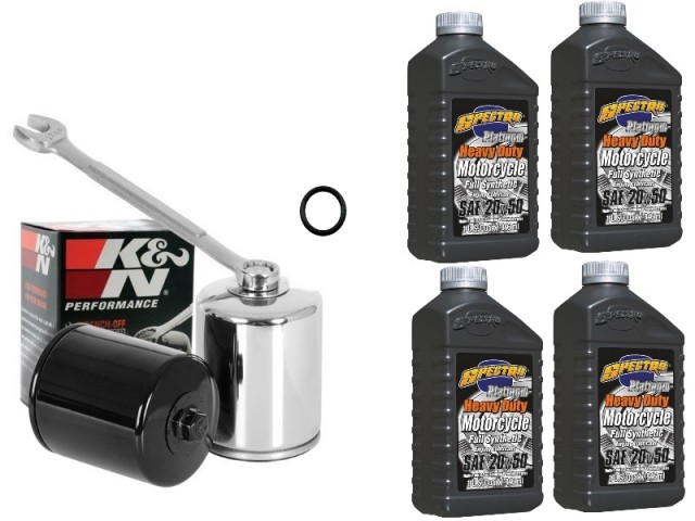 Inneholder 4x Spectro 20/50 Fullsyntetisk motorolje, 1x K&N oljefilter og 1x O-ringer for tappeplugg.