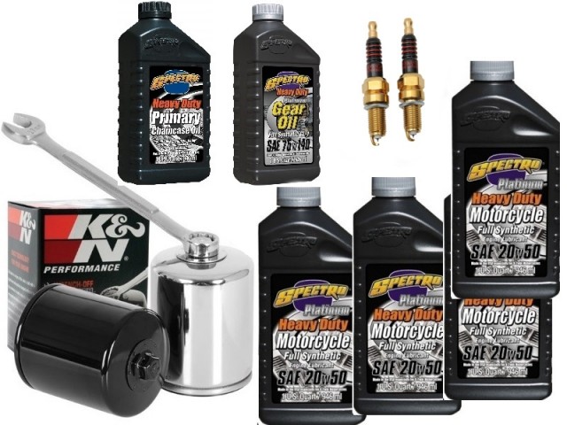 Passer alle Touring modeller 1999-2016. Inneholder 4x Spectro SAE 20/50 Fullsyntetisk Motorolje, 1x Spectro Fullsyntetisk Girolje, 1x Spectro Primær Olje, 1x K&N Oljefilter, 2x Iridium tennplugger og 3x O-ringer for tappeplugger.