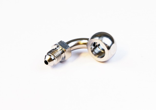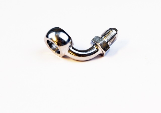 90 Grader banjo for 7/16 banjobolt i rustfritt.