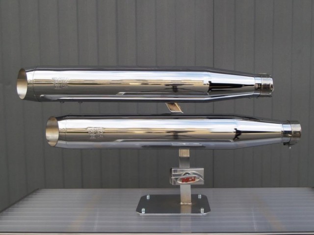 Mekanisk vaier styrte spjeld innebygget i eksospotene som reguleres ved å vri på spak som blir montert lett tilgjenglig.