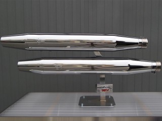 Mekanisk vaier styrte spjeld innebygget i eksospotene som reguleres ved å vri på spak som blir montert lett tilgjenglig.