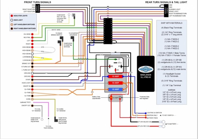 - Ledninger med terminaler til turteller, horn, oljeføler, bremselysbryter og nøytralbryter.