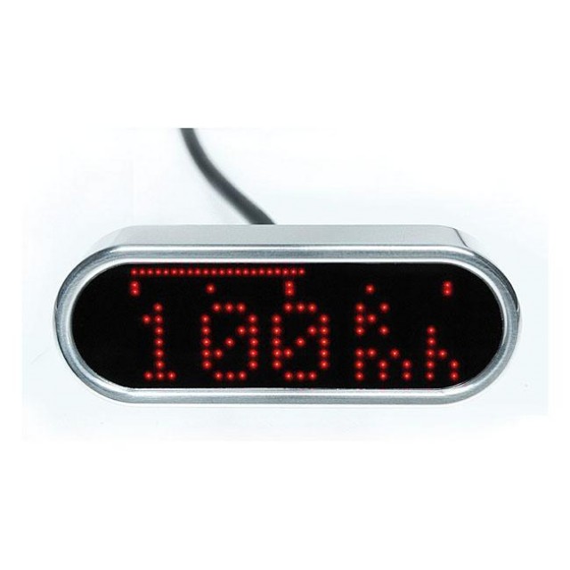 Universalt speedometer med turteller. Kan kobles opp mot medfølgende sensor eller original sensor. Mål - Bredde: 59mm. Høyde: 21.5mm. Dybde: 13mm. Inkluderer instruksjoner, sensor, mini trykk knapp og monterings skruer.