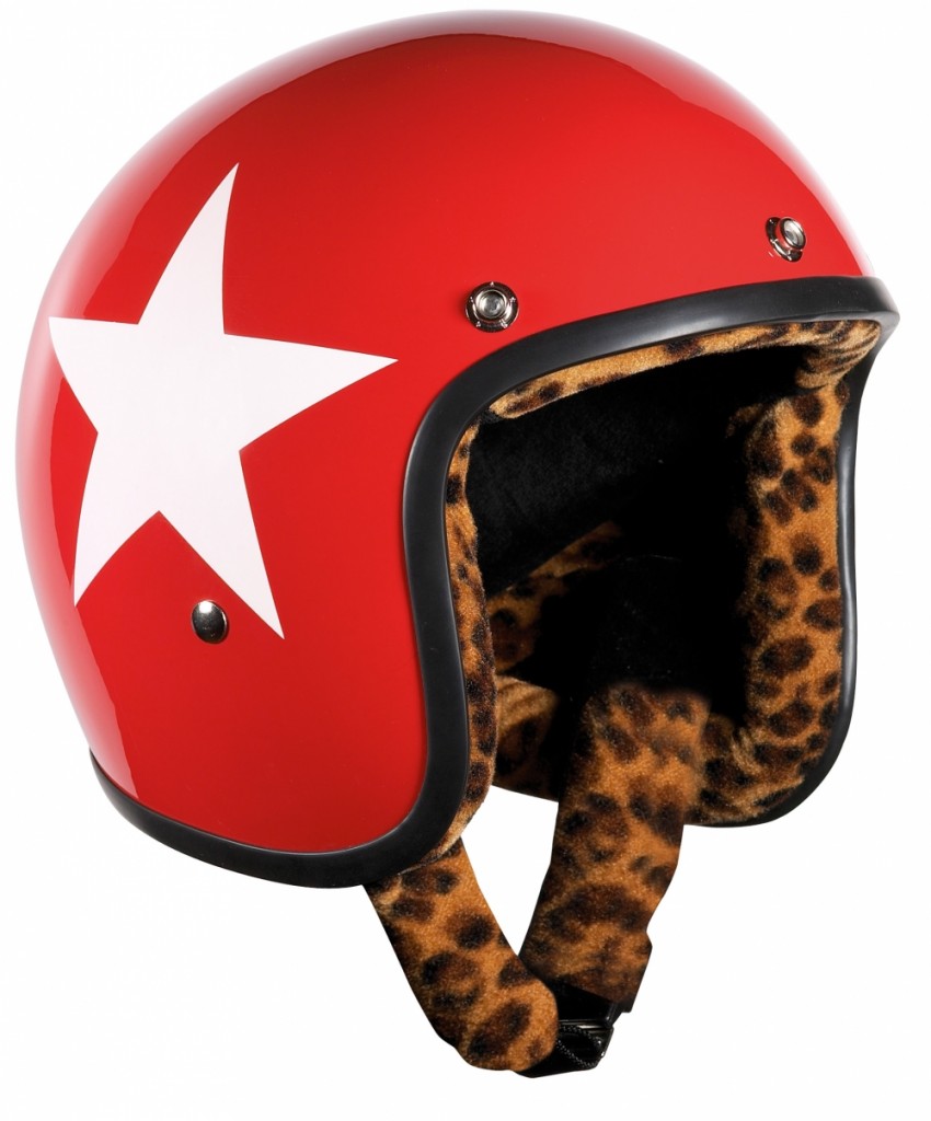 Bandit Jet halvhjelm (den som sitter fint på hodet) i blank rød med hvit stjerne og leopard innerfór.