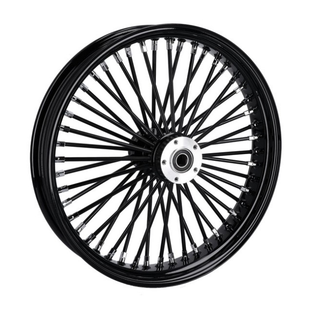 Fat Spoke felg med felgbane, nav og 8mm eiker i svart og chromede eikenippler