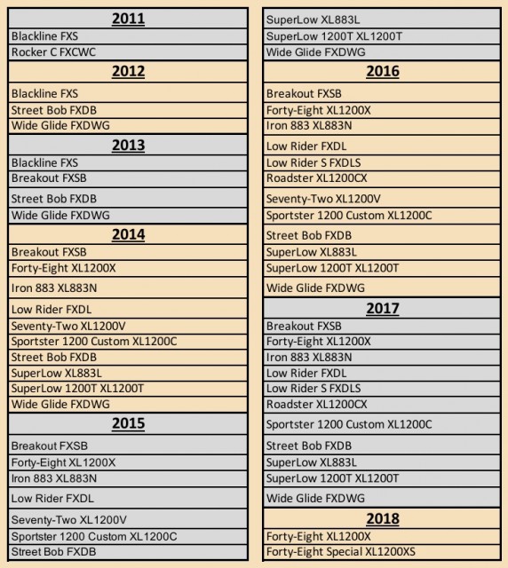 Passer Softail modeller 2011-2017, Dyna modeller 2012-2017 og Sportster modeller 2014-2022.