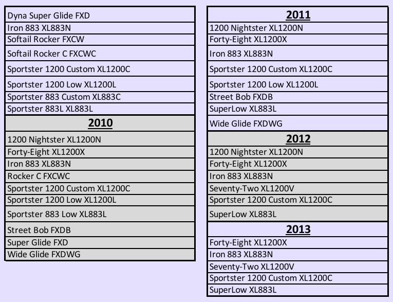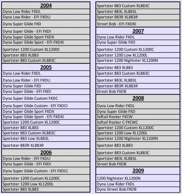 Passer Dyna modeller 2004-2011 og Sportster modeller 2004-2013 (ikke Can-bus).