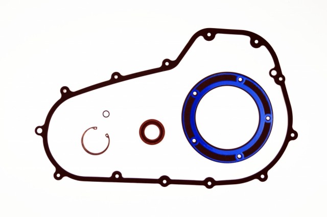 Settet inkluderer foamet pakninger til primærdeksel og derbydeksel, simring til indre primærdeksel, o-ring til tappeplugg og låsering til lageret.