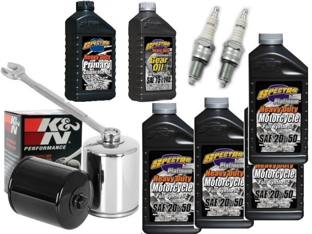 Passer alle Touring modeller 1980-1998. Inneholder 4x Spectro SAE 20/50 Fullsyntetisk Motorolje, 1x Spectro Fullsyntetisk Girolje, 1x Spectro Primær Olje, 1x K&N Oljefilter, 2x Champion RN12YC Tennplugger og 2x O-ringer for tappeplugger.