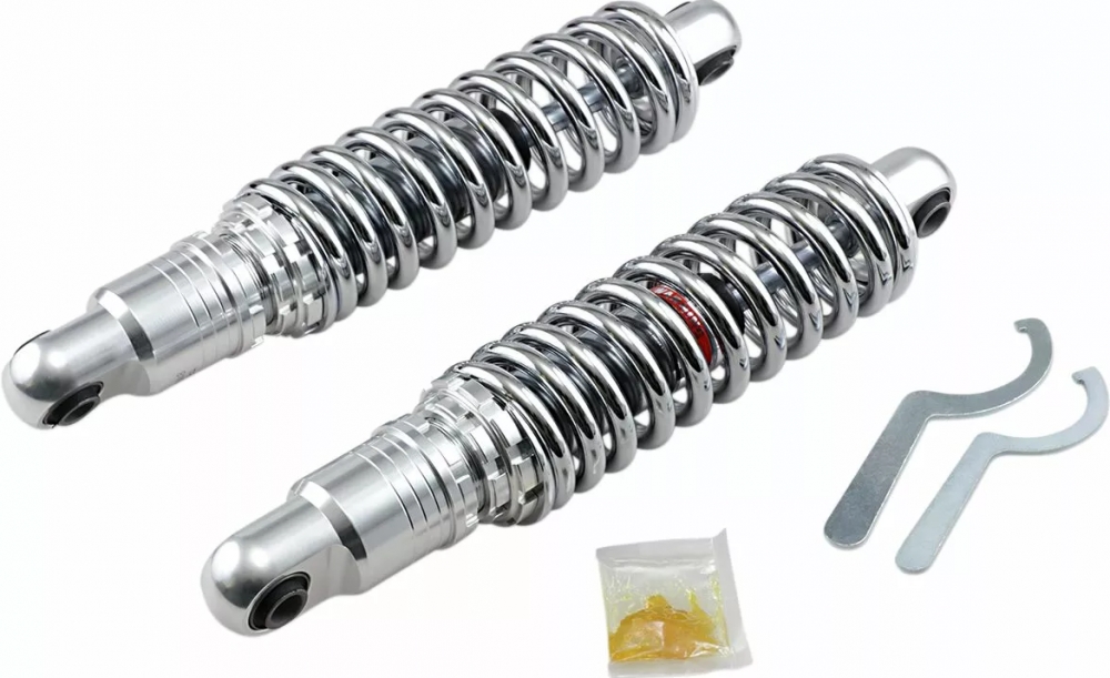 Passer Dyna modeller 1991-2017. Støtdempere som er justerbare i totallengde fra 292mm opp til 305mm. Trinnløs justering av fjærtrykk. Nitrogen fylte mono dempere med hardchrome aksler.