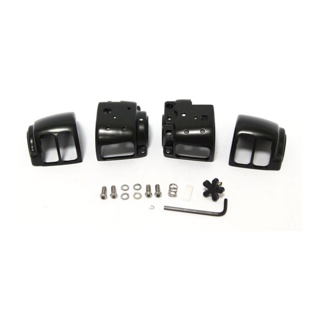 Passer Softail modeller 1996-1200 Softail, Dyna modeller 1996-2011, Touring modeller u/ cruise eller radio 1996-2013, Sportster modeller 1996-2013 XL og V-Rod modeller 02-13 V-Rod. Komplett sett med bryterhus i svart for H+V side.